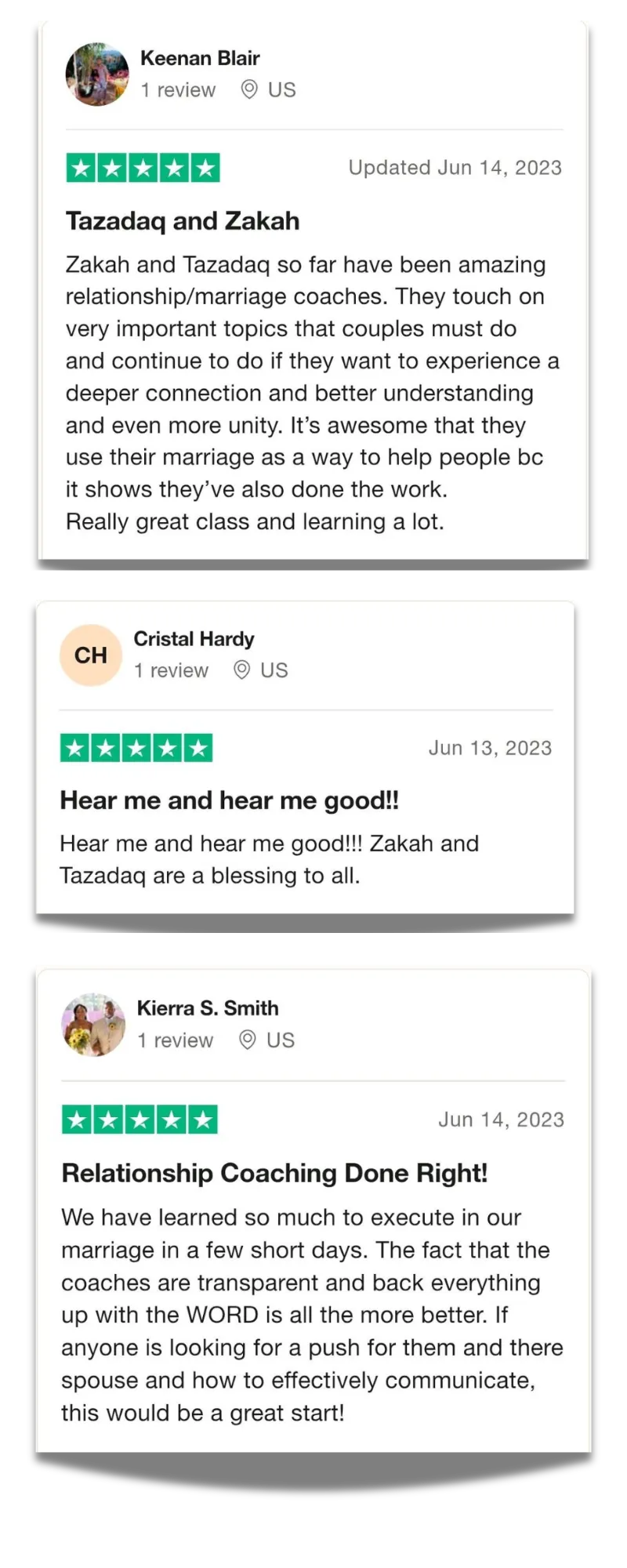 We’re Tazadaq and Zakah, Relationship & Marriage Coaches. We work with ambitious and goal-driven couples in their first 10 years of marriage improve their communication, build Naked Trust™, and have a genuine-reconnection without losing focus of their goals.