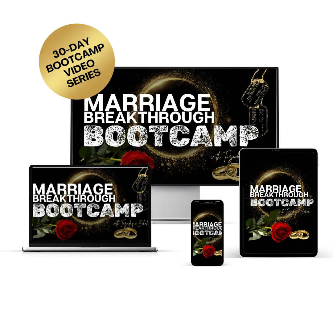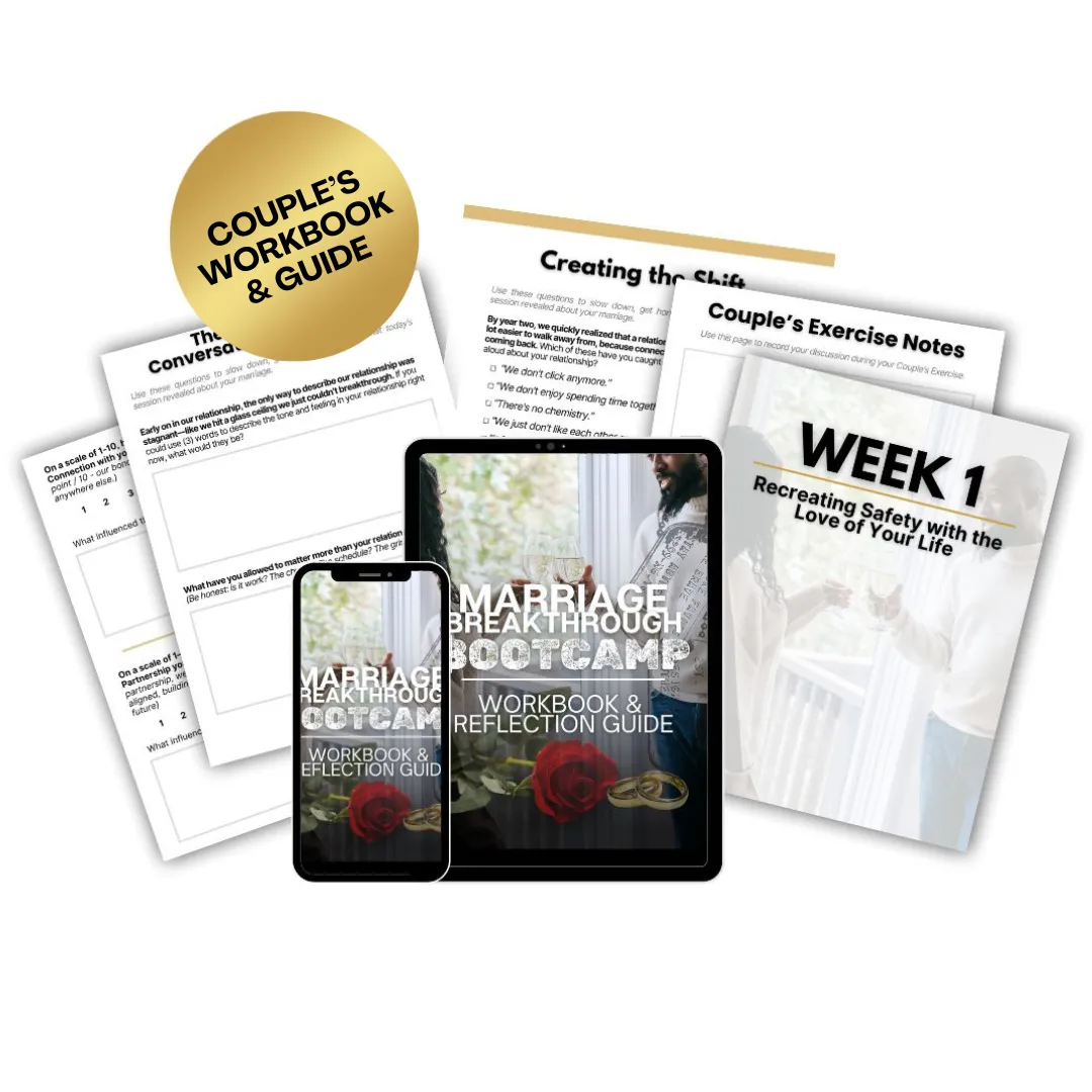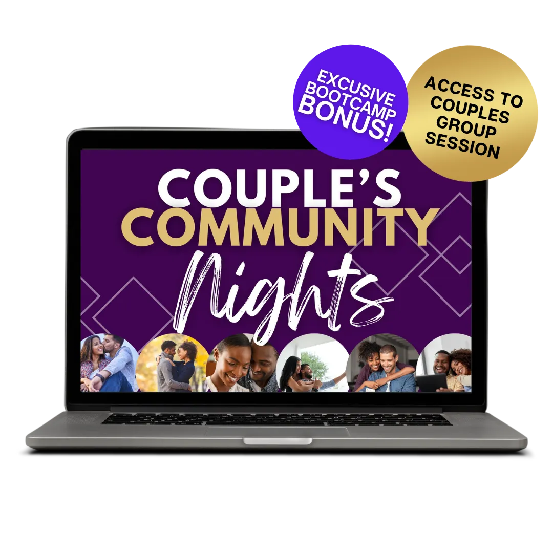 When you sign up for the Marriage breakthrough 30-Day Bootcamp, on the start date, you get access to the Marriage Breakthrough Bootcamp Guided 30-Day Video Series (one lesson drips per day), the Couple's Marriage Bootcamp Workbook & Reflection Guide, a seat in the Bi-weekly Couple's Coaching and Accountability Group Calls, bonus access to The Ladies Room Wives-only Group Session, bonus access to The King's Lounge Husbands-only Group Session, and bonus access to the Couple's Community Night Group Session.