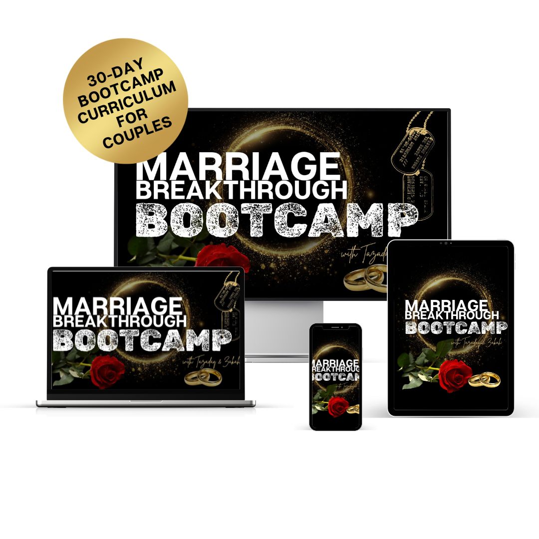 When the Bootcamp begins, you’ll receive access to the full Marriage Breakthrough 30-Day Bootcamp Curriculum, along with the Couple’s Marriage Bootcamp Workbook & Reflection Guide to support daily conversations and progress. You’ll also have a seat in our Bi-Weekly Couples Coaching & Accountability Group Calls, plus bonus access to The Ladies Room (wives-only), The King’s Lounge (husbands-only), and Couples Community Night for shared growth and support.